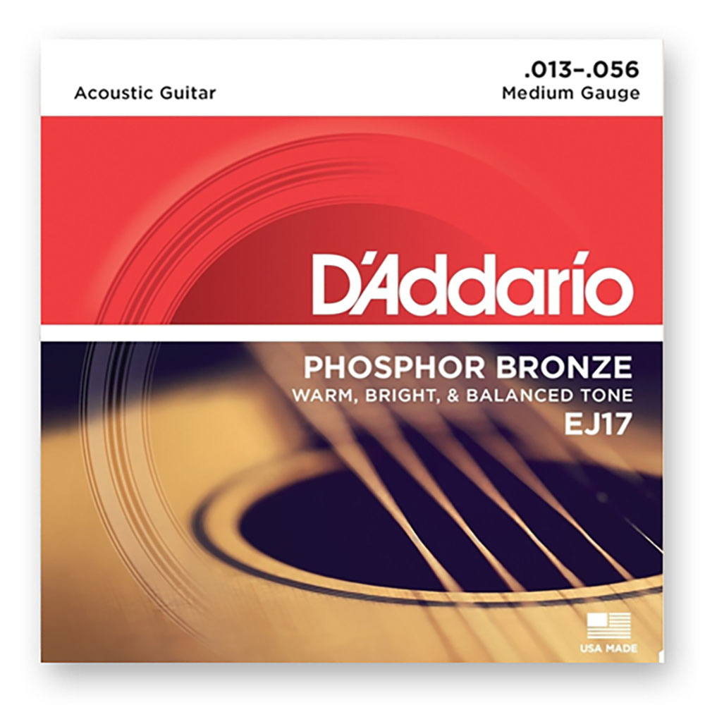 Комплект струн для акустической гитары D'Addario EJ17 среднего натяжения с обмоткой из фосфорной бронзы. Данные струны характеризуются теплым, ярким и хорошо сбалансированным звуком.