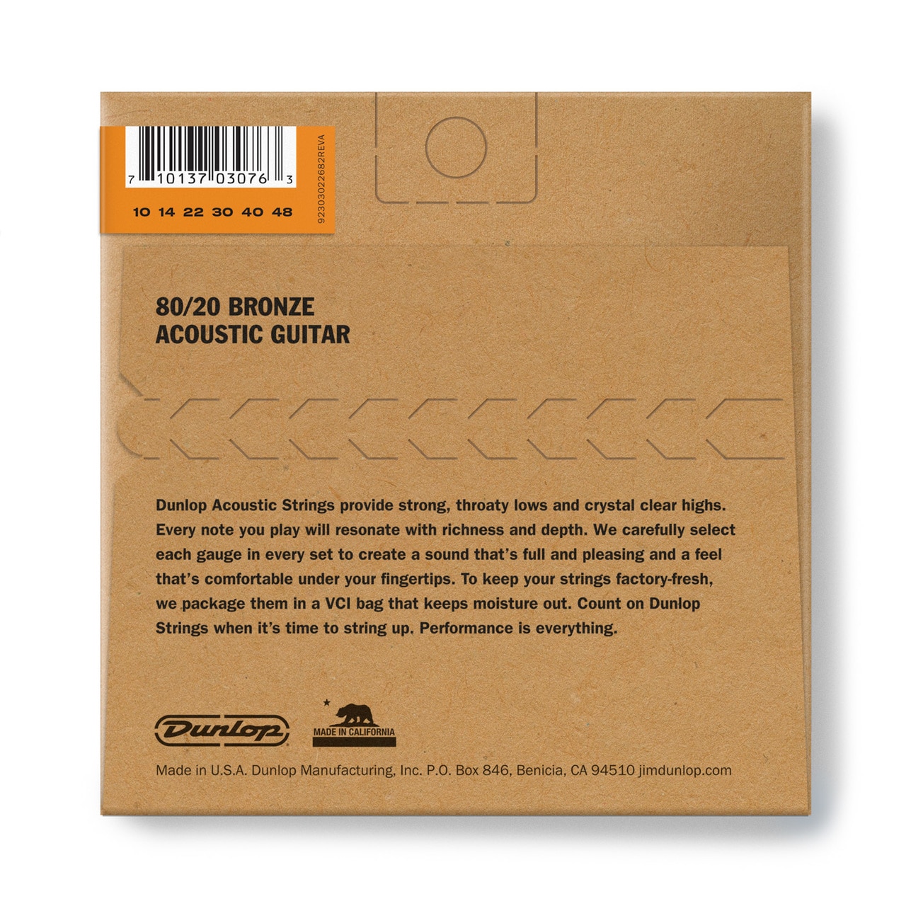 Открывая новый комплект струн Dunlop, вы увидите что они упакованы не в пластик, а в особые пакеты VCI (Vapor Corrosion Inhibitor). Конверты, изготовленные по этой технологии создают защитный барьер вокруг струны и сохраняют необходимый уровень влажности, предохраняя ее от появления ржавчины. Конверты VCI сохраняют струны такими же свежими, как в день, когда их изготовили.