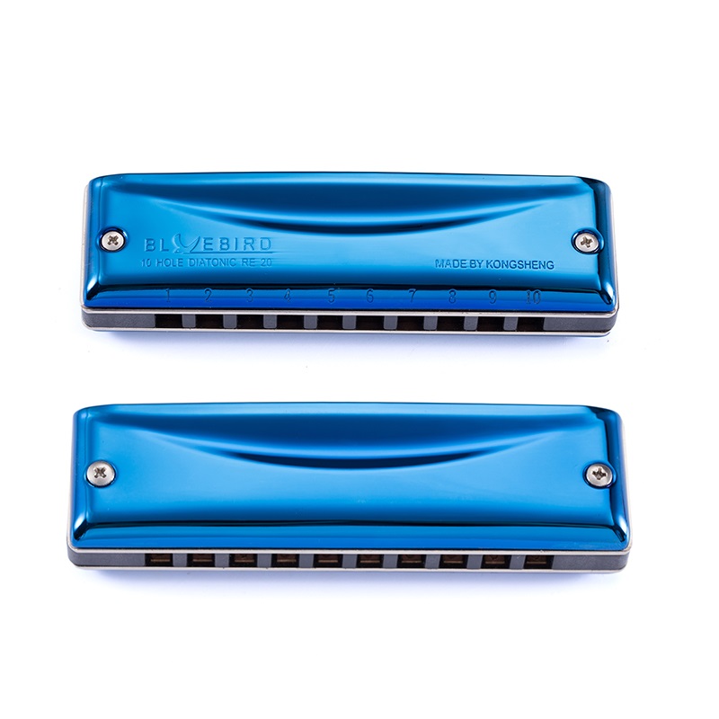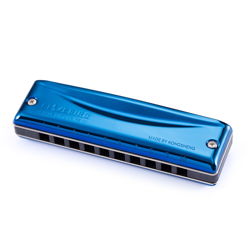 Bluebird RE-20 — диатоническая губная гармоника на 10 отверстий от фирмы Kongsheng с характерными крышками синего цвета.